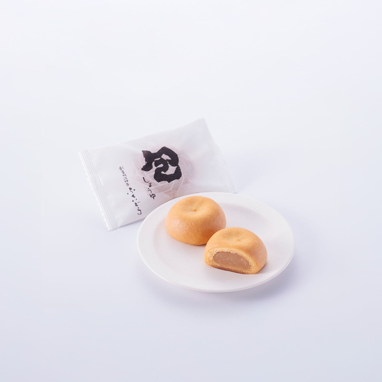 岡山・備前市の老舗醤油メーカー「鷹取醤油」を餡に使用。その芳醇な風味を練り込んだ特製ミルク餡を、しっとりもちもちの生地で包みました。和気町が誇る特産品ブランド「和気◎印」にも認定された、自慢の逸品です。