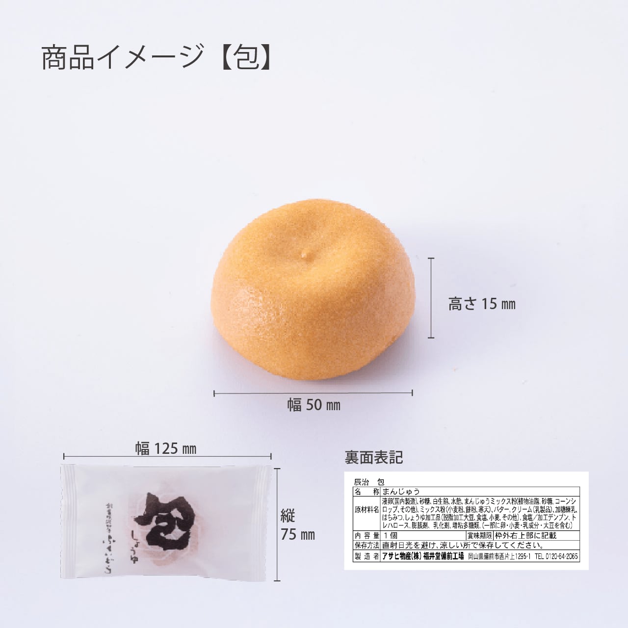 岡山・備前市の老舗醤油メーカー「鷹取醤油」を餡に使用。その芳醇な風味を練り込んだ特製ミルク餡を、しっとりもちもちの生地で包みました。和気町が誇る特産品ブランド「和気◎印」にも認定された、自慢の逸品です。