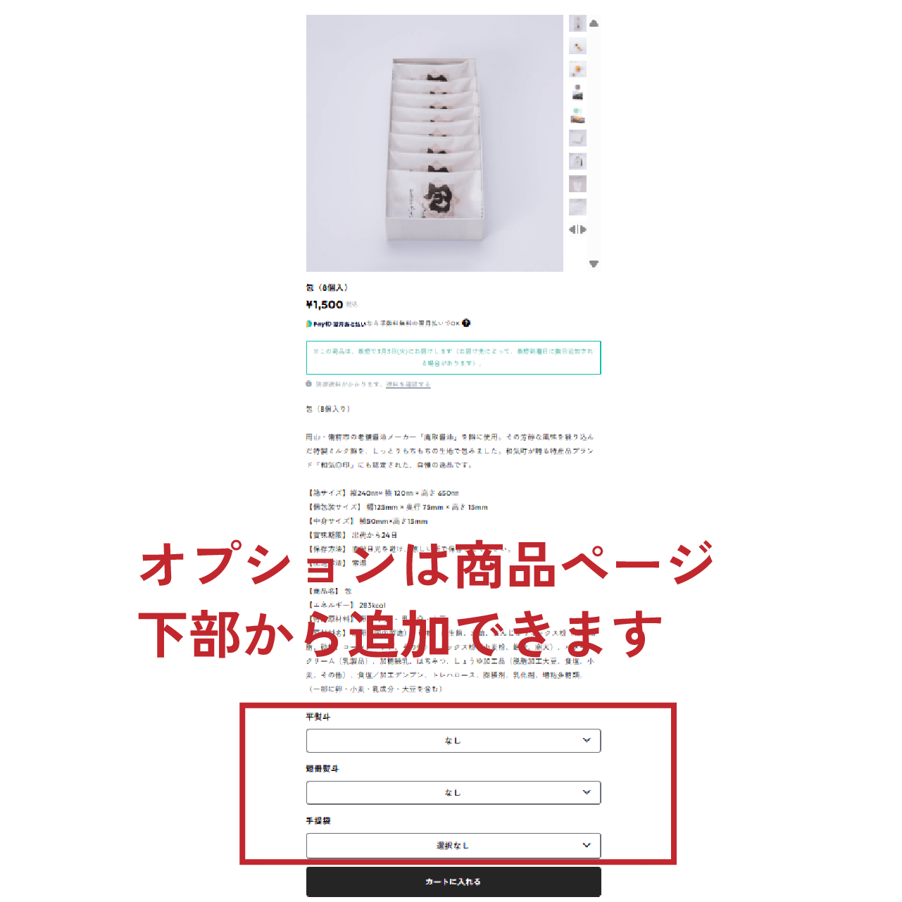 【原材料名】 液卵(国内製造)、砂糖、白生餡、水飴、まんじゅうミックス粉(植物油脂、砂糖、コーンシロップ、その他)、ミックス粉(小麦粉、餅粉、寒天)、バター、クリーム(乳製品)、加糖練乳、はちみつ、しょうゆ加工品(脱脂加工大豆、食塩、小麦、その他)、食塩/加工デンプン、トレハロース、膨脹剤、乳化剤、増粘多糖類、(一部に卵・小麦・乳成分・大豆を含む)