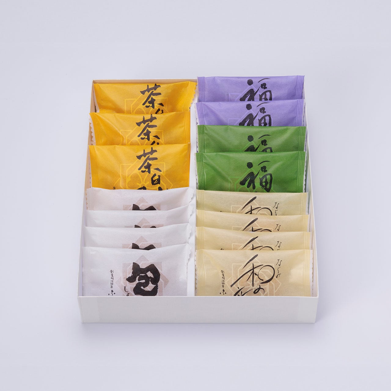 【セット内容】包:4個、和の音色:4個、福あわせ(つぶ):2個、福あわせ(抹茶):2個、茶臼山の月:3個