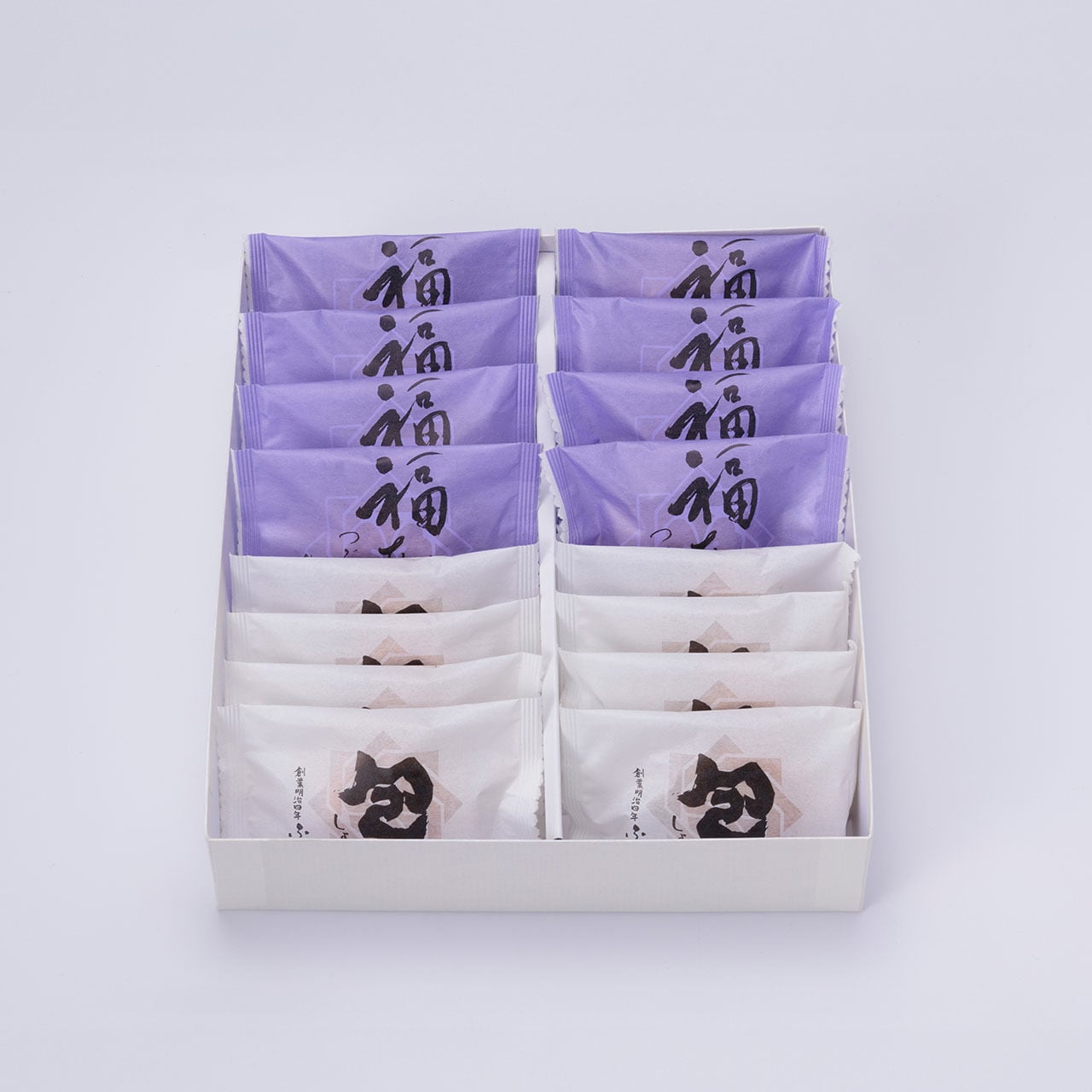 福井堂を代表する銘菓。香ばしい最中皮で、もっちり柔らかな求肥と風味豊かな粒餡を贅沢に挟みました。サクッとした食感と優しい甘さが調和する自慢の逸品。「つぶ」と「抹茶」の2種ございます。